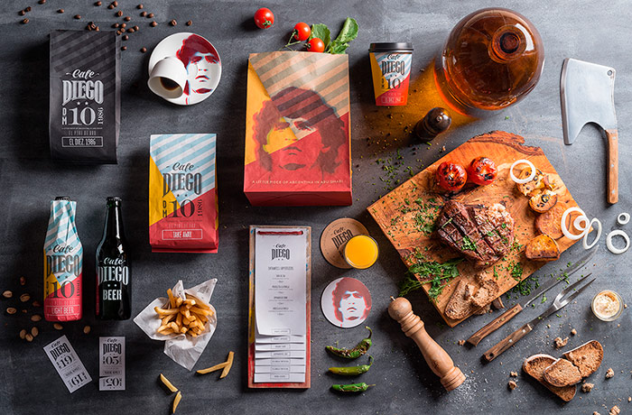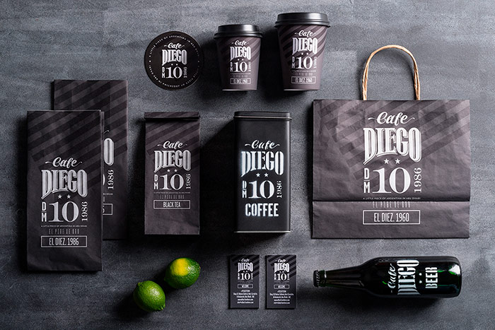 一个以足球明星为灵感的咖啡馆品牌形象设计,五彩缤纷的阿根廷街头,建筑和街头艺术,融合到该品牌设计风格中并将著名球星肖像绘制到品牌形象和包装设计中。品牌的精髓主要体现在品牌认同的媒介上,带有黑白色彩的元素。咖啡包装设计也与品牌形象一制。下面就是这个咖啡馆整体的形象设计和咖啡馆vi设计。
