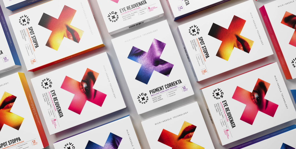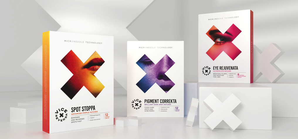发展并增强了现有的品牌VI设计,建立了一个品牌助记符,象征着品牌针对皮肤问题区域的方式。 X 标记该点。字面上地。