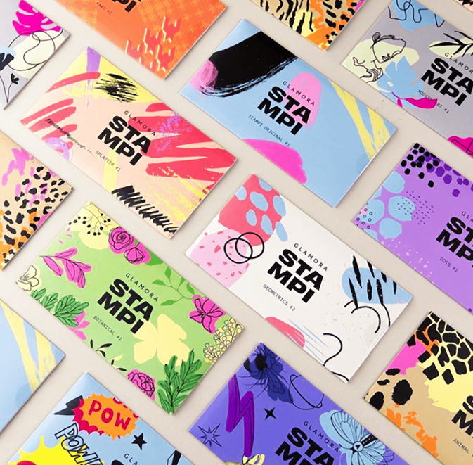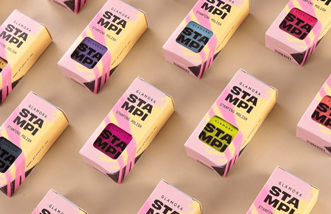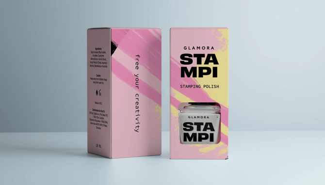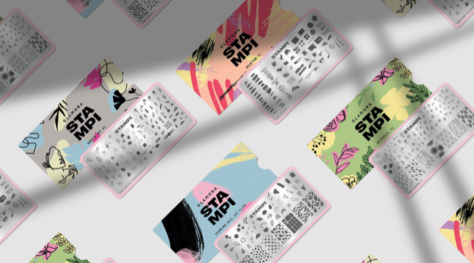 品牌VI设计灵感来自指甲冲压技术冲压是一种美甲技术,将指甲油涂在雕刻设计板的褶皱上,然后使用压模转移到指甲表面。多亏了这一点,您可以在冲压板、指甲油和特殊硅胶印章的帮助下创造出独特的美甲艺术。