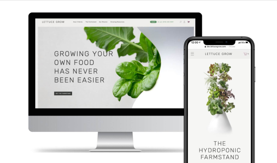 生菜生长引进了一种时尚的、革命性的、水培式的种植系统,使从家里种植的食物成为现代的生活方式。然而,它的品牌,对普通人来说,它的产品只是园艺爱好者的另一个小工具,而不是任何人都能从中受益的生活方式。这个以前的网站杂乱无章,给来访者留下了混杂的信息。明亮、多彩、欢快的自然并没有传达出优质的产品。虽然一个明亮的网站本质上并不坏,但它并不适合千禧一代的消费者,因为他们期待着一台百乐通或行李箱的外观和感觉。