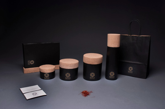品牌标志设计和产品包装设计决定使用可以回收的天然材料,可以传承藏红花种植的手工艺。
