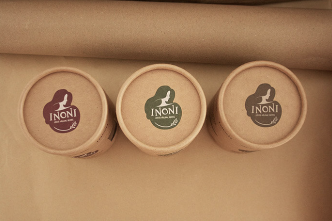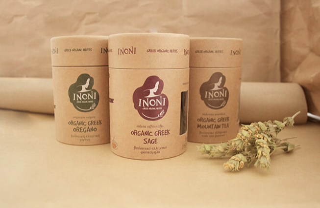Inoni 标志设计中的女性是希腊神话中的若虫,与希腊本地女性的的感情、关怀和草药密不可分。 企业在要求标志设计、品牌形象设计和产品包装中描绘这个特点,并强调始用环保材料和颜色。