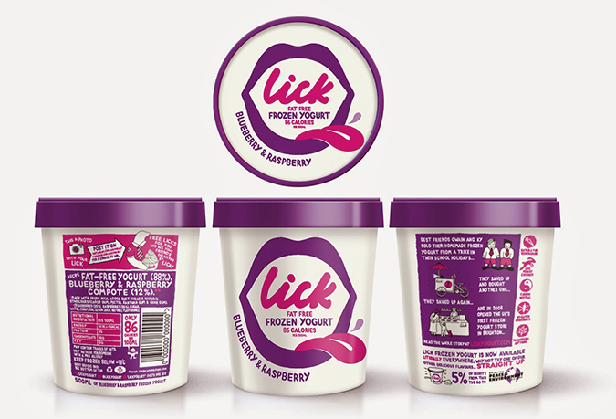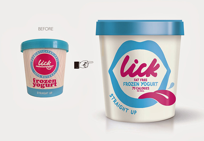 这种品牌设计是建立在舔酸奶时那种难以形容的快乐时刻的基础上的。品牌设计公司从最初的包装中放大了舌头和嘴巴,并创造了一个色彩调色板,更能唤起冷冻酸奶本身的味道和质地。